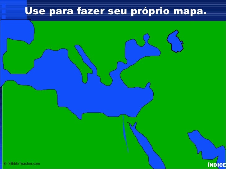 45. 45. Use para fazer seu próprio mapa. Bible Lands Blank Map Click to add title • Click to add text Israel© EBibleTeacher.com ÍNDICE