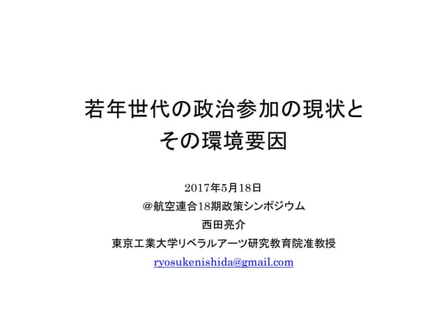 20170518航空連合(西田)「若年世代ﰀ政治参加ﰀ現状とそのﰀ環境要因」 by NishidaRyosuke__expect_exception__