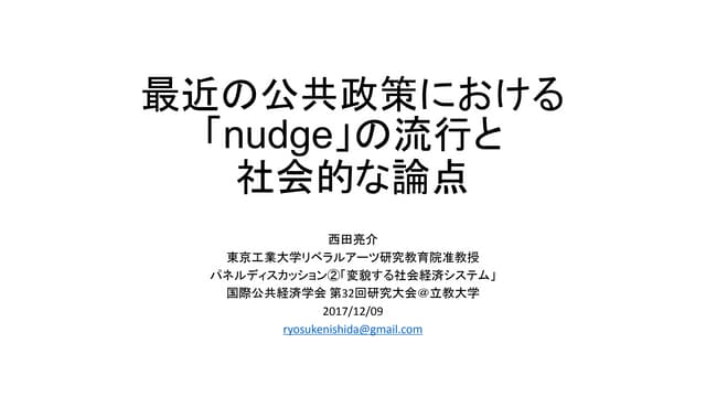 20171209国際公共経済学会「最近の公共政策における「nudge」の流行と 社会的な論点」 by NishidaRyosuke__expect_exception__