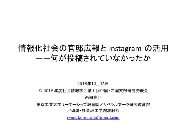 20181215「情報化社会の官邸広報とinstagram の活用——何が投稿されていなかったか」 by NishidaRyosuke__expect_exception__