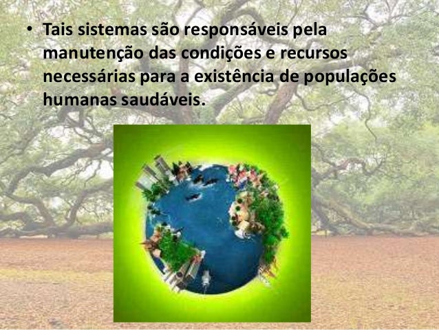 12. 12. • Tais sistemas são responsáveis pela manutenção das condições e recursos necessárias para a existência de populações humanas saudáveis.