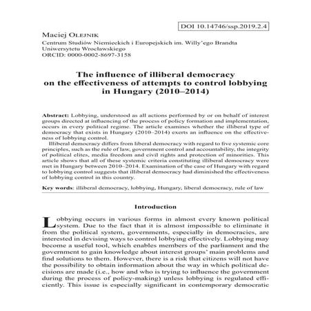 11. 11. 9 of the policy options ahead and assess the validity of a proposed policy framework on financing democracy which supports the OECD Trust Strategy. Questions for Discussion - What key practical recommendations can be identified to mitigate the risks of policy capture by political finance? - What aspects of political finance require further in-depth analysis? - How can the OECD and other international organisations as well as leading experts advance and shape an understanding on political finance? - Should this forum for learning and discussion meet at regular intervals (e.g. annually)? Moderator  Janos Bertok, Head of Public Sector Integrity Division, Public Governance Directorate, OECD Discussants  Robert Neill, Member of the UK Parliament, Former Parliamentary Under-Secretary  Michael Pinto-Duschinsky, Senior Consultant, Policy Exchange  Elin Falguera, Programme Officer, International IDEA  Kalin Ivanov, Anti-Corruption Policy Officer, European Commission 12.45 – 13.00 Closing Remarks by Janos Bertok, Head of Public Sector Integrity Division, Public Governance Directorate, OECD
