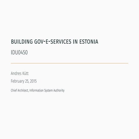OECD Presentation on Digital Government and Cross-border Services for Estonia, at the launch of the OECD Public Governance Review of Finland and Estonia 2015. For more information see www.oecd.org/gov/launch-of-the-public-governance-review-of-estonia-and-finland.htm
