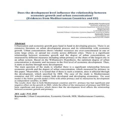 7. 7. 5 Figure 4. Degree of economic diversification: labour force concentration by industrial sectors in predominantly urban regions (2012) Source: OECD regional database (2016), own calculation. Note: Herfindahl-Hirschmann Index (HHI) suggests to what extent the labour force is concentrated in specific industrial sectors or to what extent the labour force id diverse among industrial sectors. HHI below 0.15 is considered that the labour force is not concentrated in specific sectors. Innovation takes place to lead the economy Promoting innovation is also one of the major elements of the economic driver. A city with higher innovation capacity is likely to be more resilient. This is primarily due to the greater growth potential associated with innovation, and also to the possibility of greater economic diversification that can arise as a result of new products, services, and processes. One way to measure innovation is the number of patent applications (Figure 5). Annual average growth ratio in the number of patent applications is high in metropolitan areas in Estonia (25.7%), Chile (22.9%), Portugal (14.7%) and Japan (10.0%). The number of applications per 1,000,000 habitants is larger in metropolitan areas in Finland, Sweden, Netherland and Denmark, but its annual growth is rather modest. Concentrated (= less diversified ) Moderately concentrated (= moderately diversified) Not concentrated (= well diversified) - Predominantly urban regions