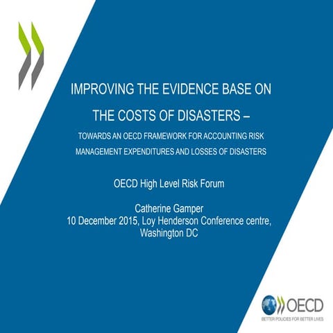 1. 1. IMPROVING THE EVIDENCE BASE ON THE COSTS OF DISASTERS – TOWARDS AN OECD FRAMEWORK FOR ACCOUNTING RISK MANAGEMENT EXPENDITURES AND LOSSES OF DISASTERS OECD High Level Risk Forum Public Governance and Territorial Development Directorate Catherine Gamper November 21 2014, OECD Headquarters, Paris