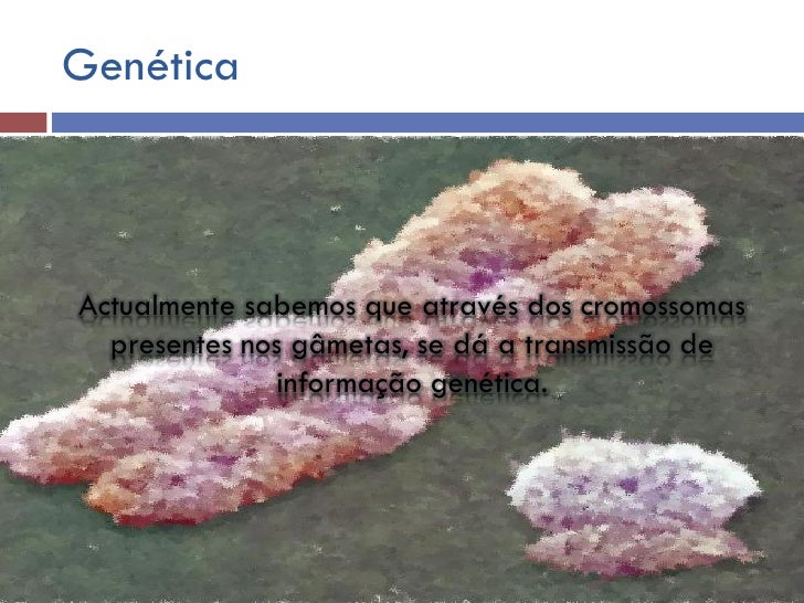 12. 12. GenéticaActualmente sabemos que através dos cromossomas presentes nos gâmetas, se dá a transmissão de informação genética.
