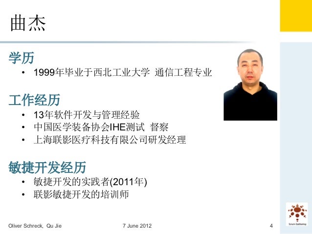 This is presentation given by me and my colleague at the Scrum Gathering 2012 in Shanghai. It describes our adventure setting up Scrum at United Imaging.