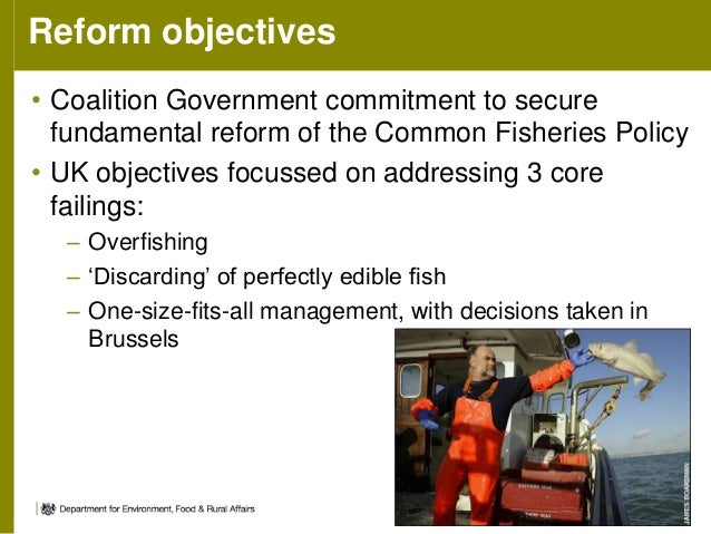 3. 3. Reform objectives • Coalition Government commitment to secure fundamental reform of the Common Fisheries Policy • UK objectives focussed on addressing 3 core failings: – Overfishing – ‘Discarding’ of perfectly edible fish – One-size-fits-all management, with decisions taken in Brussels 3