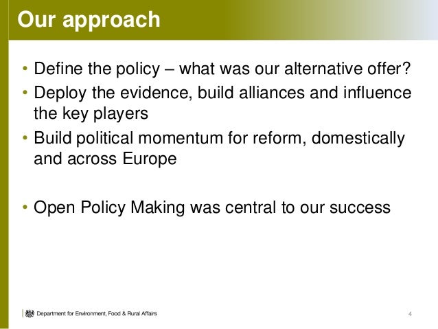 4. 4. Our approach • Define the policy – what was our alternative offer? • Deploy the evidence, build alliances and influence the key players • Build political momentum for reform, domestically and across Europe • Open Policy Making was central to our success 4