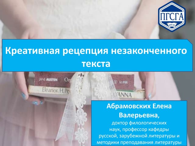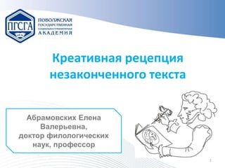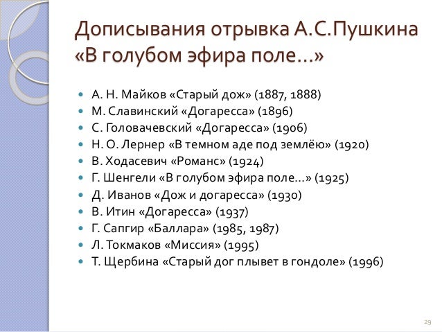 -механизмы креативной рецепции на материале творческих дописываний незаконченных произведений А.С.Пушкина «В голубом эфира поле…», «Русалка», «Египетские ночи».