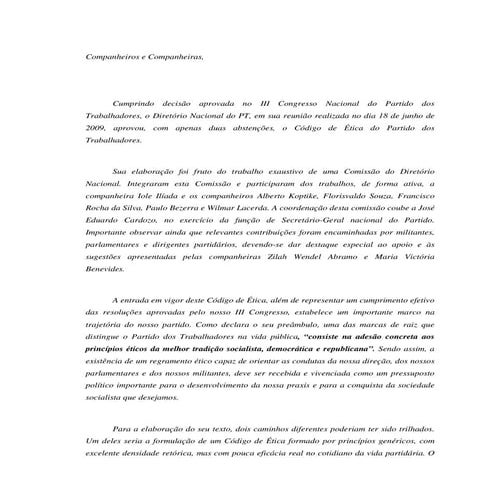 9. 9. É importante que o partido tenha claro que a entrada de jovens nos espaços políticos representa a oxigenação do PT. Isso significa a esperança de uma política renovada, sem corrupção ou abuso de poder. •As plataformas dos/das candidatos/as jovens não devem ser segmentadas demais, devemos construir propostas para toda a sociedade. Elaborar uma campanha em torno da militância do movimento estudantil, defendendo apenas a educação não resolve. Precisamos pautar as principais necessidades do município que não se resumem apenas a um eixo. •A juventude significa renovação, o período eleitoral é propício para explorar isso. Reinvente, fuja da forma convencional de pedir voto, uma campanha jovem significa inovação. • A Juventude do PT não é apenas “campanheira”, tem formulação para contribuir, e muito, com todas as candidaturas. PT • No geral, os jovens não tem a experiência nos processos burocráti- cos do período eleitoral, por isso necessitam do apoio da direção do partido. Erros são naturais e acontecem com todos, então não seja rígido demais com eles, atitudes como estas podem afastar em vez de aproximar os jovens. Em contrapartida tem muito mais disposição, inclusive de estudar e se formar no processo eleitoral. Dar autonomia para as questões que lhes tangem é fundametal para a formação e a capacitação política da juventude. • Os/as candidatos/as jovens são uma boa novidade, na maioria das vezes são o diferencial. Mesmo que sua trajetória não seja longa é, preciso respeito. O discurso que “fundamos esse partido e sabemos muito mais que vocês” não passa de demagogia, pois no período em que vivemos, da tecnologia e da diversificação, os jovens conhecem muito mais a realidade do que a maior parte das pessoas. Se você acha que sabe tudo sobre a juventude você está enganado, pois ela se reinventa a cada minuto.