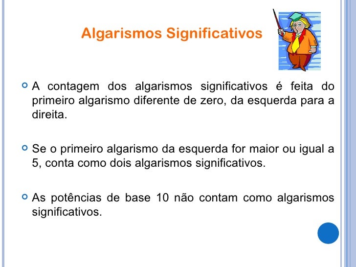 6. 6. Algarismos Significativos <ul><li>A contagem dos algarismos significativos é feita do primeiro algarismo diferente de zero, da esquerda para a direita. </li></ul><ul><li>Se o primeiro algarismo da esquerda for maior ou igual a 5, conta como dois algarismos significativos. </li></ul><ul><li>As potências de base 10 não contam como algarismos significativos. </li></ul>