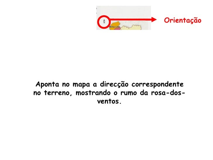 4. 4. Orientação Aponta no mapa a direcção correspondenteno terreno, mostrando o rumo da rosa-dos- ventos.
