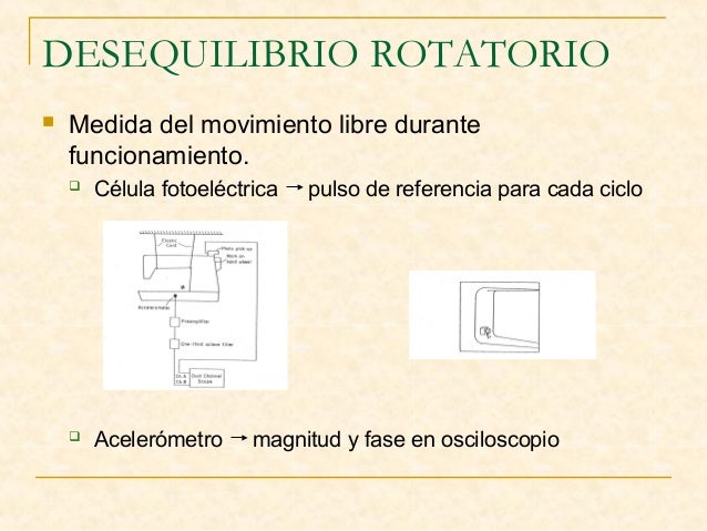 10. 10. DESEQUILIBRIO ROTATORIO  Medida del movimiento libre durante funcionamiento.  Célula fotoeléctrica pulso de referencia para cada ciclo  Acelerómetro magnitud y fase en osciloscopio