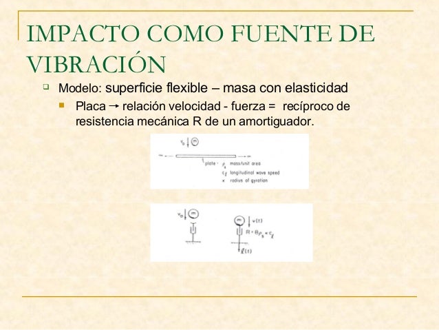 16. 16. IMPACTO COMO FUENTE DE VIBRACIÓN  Modelo: superficie flexible – masa con elasticidad  Placa relación velocidad - fuerza = recíproco de resistencia mecánica R de un amortiguador.