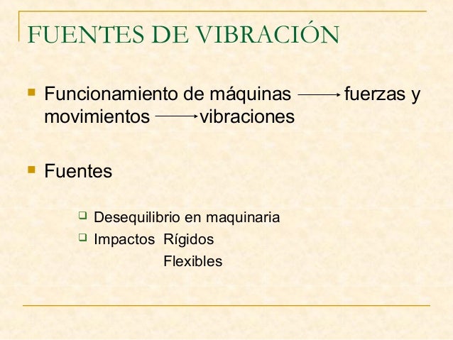 2. 2. FUENTES DE VIBRACIÓN  Funcionamiento de máquinas fuerzas y movimientos vibraciones  Fuentes  Desequilibrio en maquinaria  Impactos Rígidos Flexibles