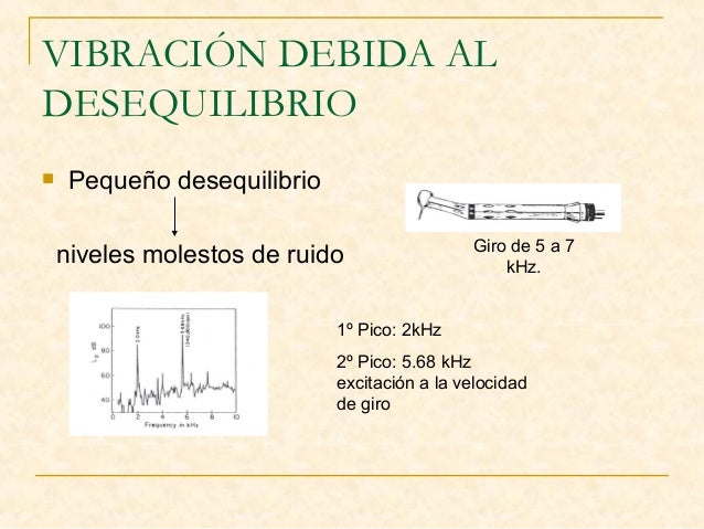 4. 4. VIBRACIÓN DEBIDA AL DESEQUILIBRIO  Pequeño desequilibrio niveles molestos de ruido Giro de 5 a 7 kHz. 1º Pico: 2kHz 2º Pico: 5.68 kHz excitación a la velocidad de giro