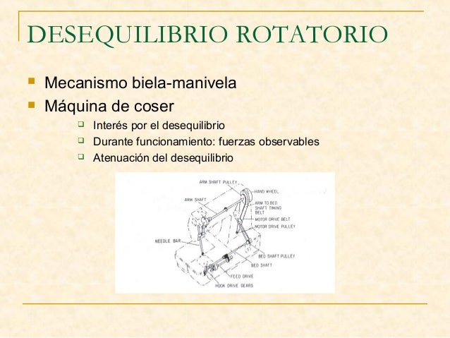 5. 5. DESEQUILIBRIO ROTATORIO  Mecanismo biela-manivela  Máquina de coser  Interés por el desequilibrio  Durante funcionamiento: fuerzas observables  Atenuación del desequilibrio
