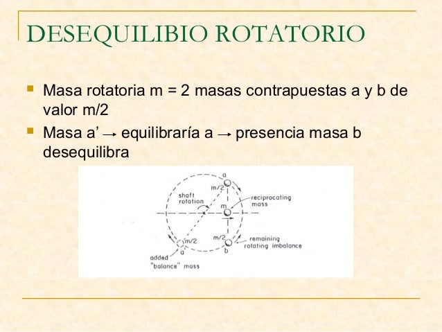6. 6. DESEQUILIBIO ROTATORIO  Masa rotatoria m = 2 masas contrapuestas a y b de valor m/2  Masa a’ equilibraría a presencia masa b desequilibra