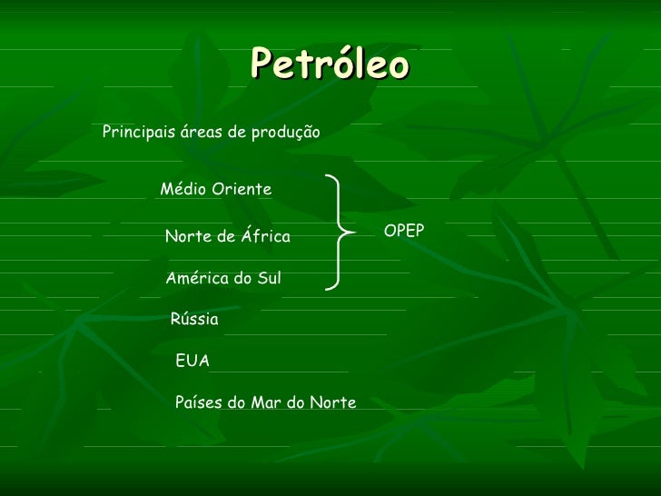 PetróleoPrincipais áreas de produção       Médio Oriente        Norte de África           OPEP        América do Sul      ...