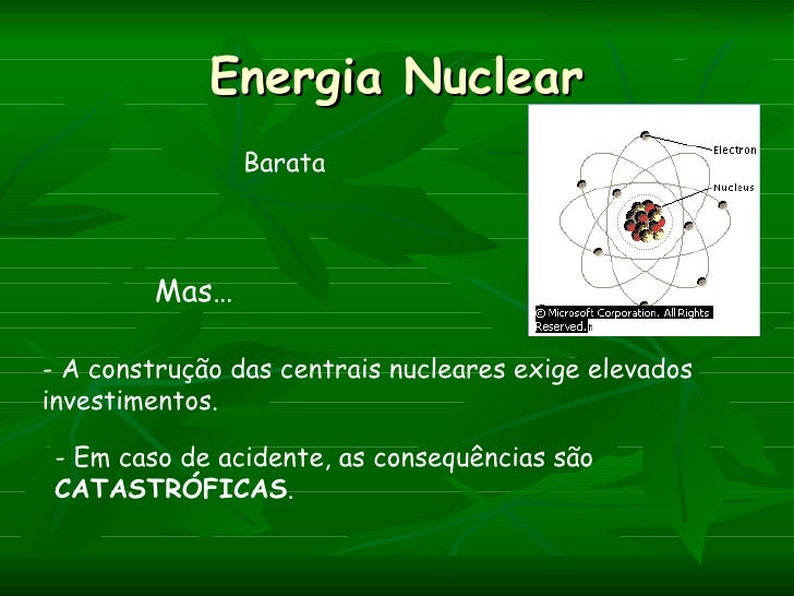 Energia Nuclear                Barata        Mas…- A construção das centrais nucleares exige elevadosinvestimentos. - Em c...