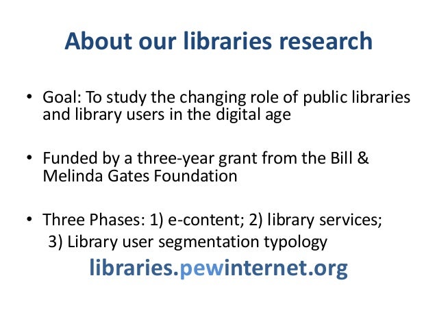 findings about library services: what the public wants (and does not want) at libraries, as well as details from library focus groups on how libraries are coping with the new mix of servic
