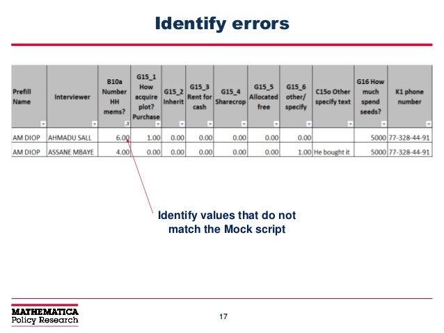 17. 17. 1717 Identify errors Identify values that do not match the Mock script