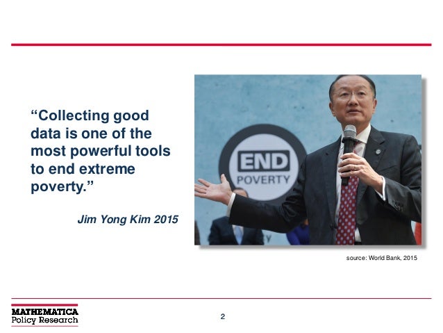 2. 2. 22 “Collecting good data is one of the most powerful tools to end extreme poverty.” Jim Yong Kim 2015 source: World Bank, 2015