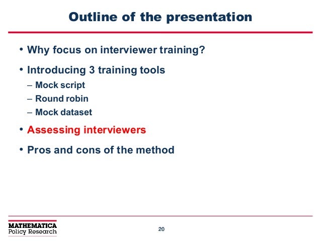 20. 20. 2020 Outline of the presentation • Why focus on interviewer training? • Introducing 3 training tools – Mock script – Round robin – Mock dataset • Assessing interviewers • Pros and cons of the method