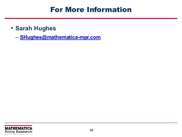 25. 25. 2525 For More Information • Sarah Hughes – SHughes@mathematica-mpr.com