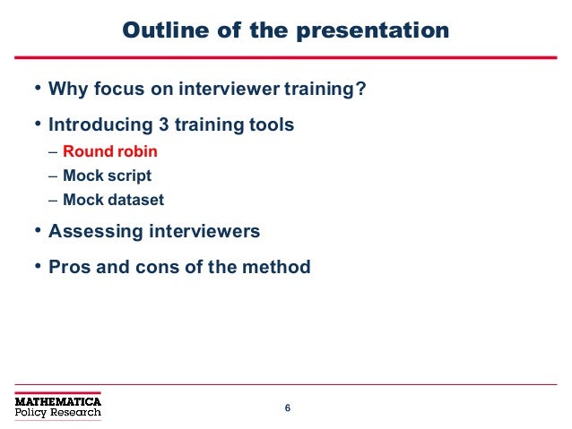 6. 6. 66 Outline of the presentation • Why focus on interviewer training? • Introducing 3 training tools – Round robin – Mock script – Mock dataset • Assessing interviewers • Pros and cons of the method