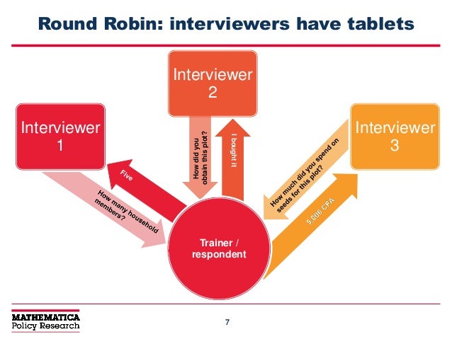 7. 7. 77 Interviewer 1 Iboughtit Interviewer 2 Interviewer 3 Howdidyou obtainthisplot? Trainer / respondent Round Robin: interviewers have tablets