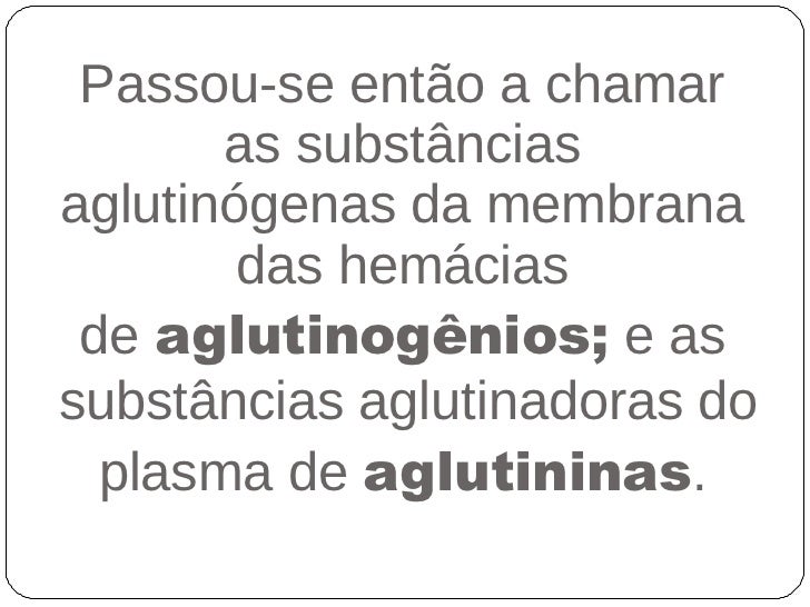 3. 3. Passou-se então a chamar as substânciasaglutinógenas da membrana das hemácias de aglutinogênios; e assubstâncias aglutinadoras do plasma de aglutininas.