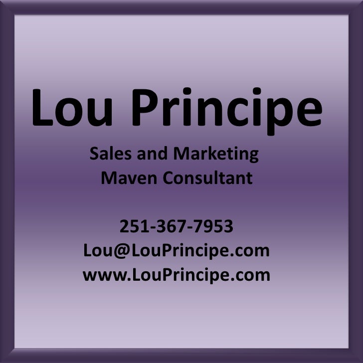 38. 38. Lou Principe<br />Sales and Marketing <br />Maven Consultant<br />251-367-7953<br />Lou@LouPrincipe.com<br />www.LouPrincipe.com<br />