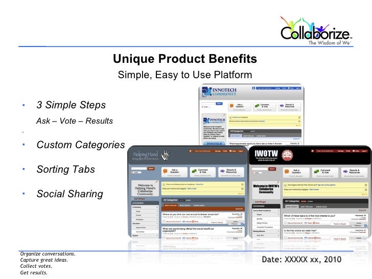We provide a platform that reduces your emails and meetings and create a platform where your entire online community to communicate, share ideas, and provide input so that you can make better decisions through the power of WE instead of ME.
