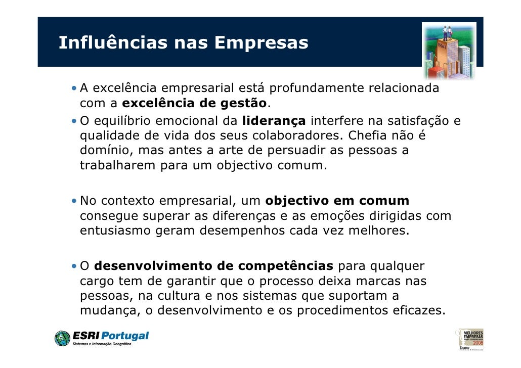 21. 21. Organização emocionalmente inteligente • A construção de organizações emocionalmente inteligentes, com um clima e uma cultura propícios, é hoje um dos grandes desafios com que se deparam todos os que aspiram a tornar-se líderes de organizações. • A capacidade da empresa aprender com a sua experiência, será um factor de crescente importância para o desenvolvimento dos seus mecanismos de aperfeiçoamento, tornando-se efectivamente em learning organizations.