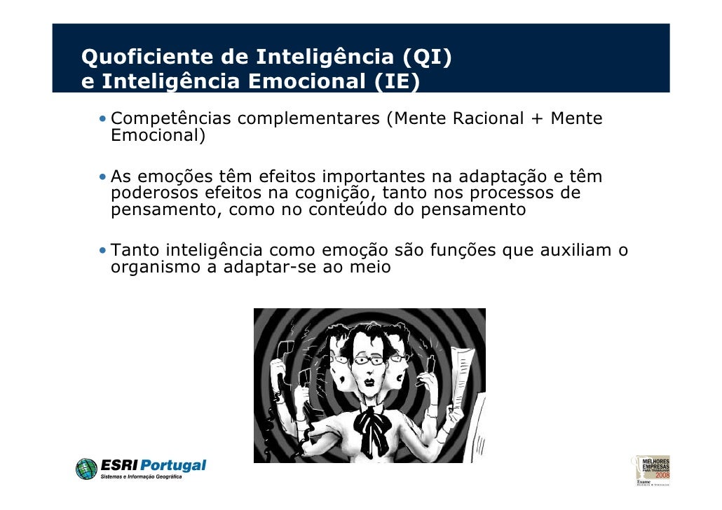 3. 3. Quoficiente de Inteligência (QI)e Inteligência Emocional (IE) • Competências complementares (Mente Racional + Mente Emocional) • As emoções têm efeitos importantes na adaptação e têm poderosos efeitos na cognição, tanto nos processos de pensamento, como no conteúdo do pensamento • Tanto inteligência como emoção são funções que auxiliam o organismo a adaptar-se ao meio