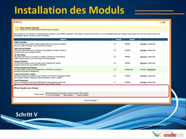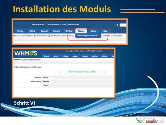 8. 8. Die Offiziellen ResellerClub WHMCS Moduln installieren