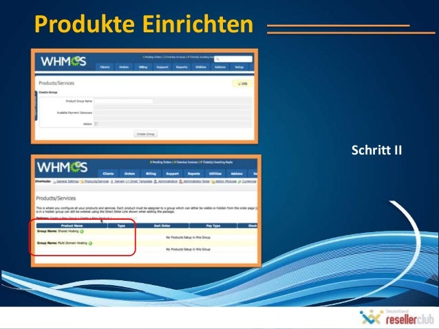 5. 5. Wie funktioniert WHMCSZwei Wege, über das WHMCS mit ResellerClub verbunden werden kann.1) Anmelden für ein ResellerClub Konto durch WHMCS » Es ist ein Kostenlos Konto mit keinen Startguthaben » Domäne können durch WHMCS direkt nach dem Konfigurieren des ResellerClub Kontos innerhalb von WHMCS registriert/verwaltet werden. » Preise wurde von WHMCS angeboten.2) Anmelden für ein ResellerClub Konto direkt » Das ist eine normale Reseller Anmeldung durch www.resellerclub.com » Solche Resellern sollen WHMCS auf Ihrer Hosting einstellen und die mit Reseller Konto integrieren.