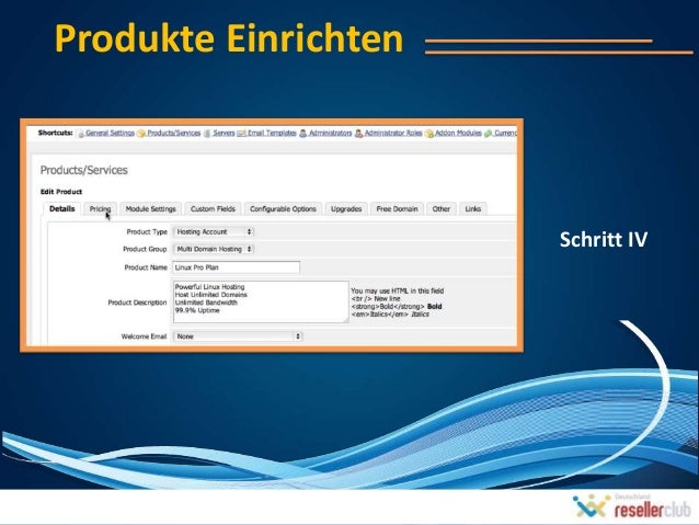 15. 15. Ein Hosting Produkt einrichten