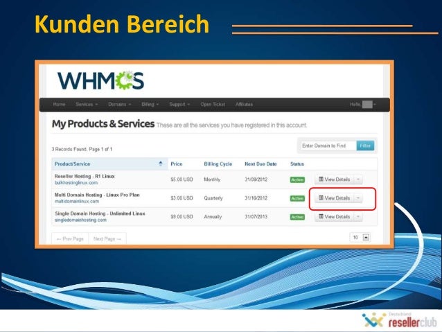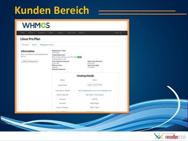 2. 2. Was ist WHMCS?WHMCS ist ein all-in-one KundenVerwaltung, Rechnung & Support Lösungfür Online Geschäfte.Jedes Geschäft mit einem Bedürfnis nachder Online-Abrechnung, besondersDienstleistungen oder Mitgliedschaft einerwiederkehrenden Natur kann diese Lösungverwenden.Das kann als ein eigenständiges Portalfunktionieren oder kann in einervorhandene Website integriert werden.Bekommen Sie nahtlose Integration vonZahlungs- Gateways, APIs, Domain Registrationusw.