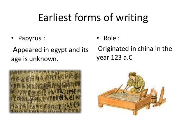 8. 8. Earliest forms of writing• Papyrus : • Role :Appeared in egypt and its Originated in china in theage is unknown. year 123 a.C