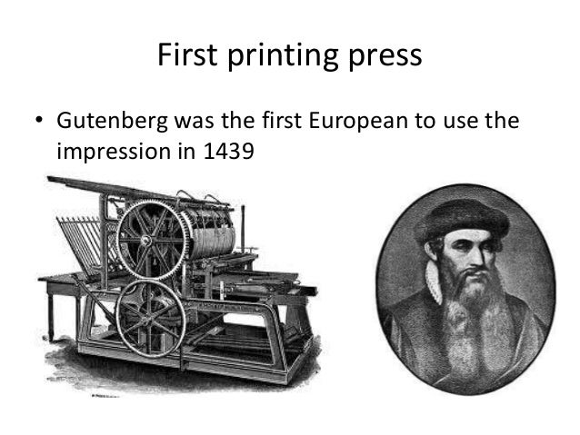 9. 9. First printing press• Gutenberg was the first European to use the impression in 1439