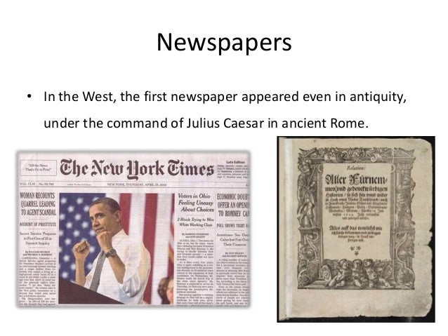 10. 10. Newspapers• In the West, the first newspaper appeared even in antiquity, under the command of Julius Caesar in ancient Rome.