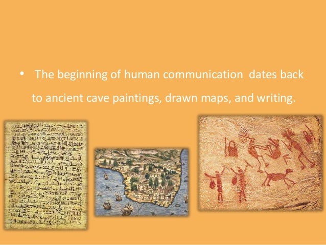 3. 3. • The beginning of human communication dates back to ancient cave paintings, drawn maps, and writing.