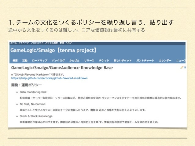 1. チームの文化をつくるポリシーを繰り返し言う、貼り出す