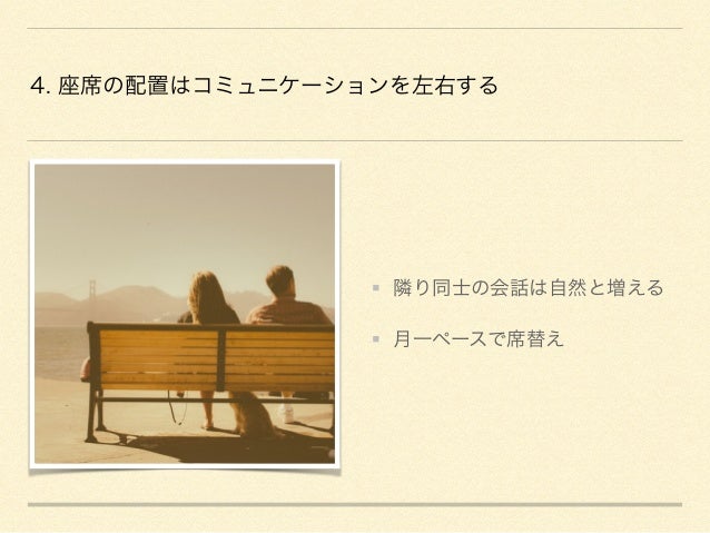 8. 8. 4. 座席の配置はコミュニケーションを左右する 隣り同士の会話は自然と増える 月一ペースで席替え