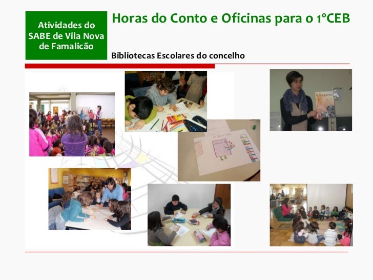 9. 9. Horas do Conto e Oficinas para o 1ºCEB Bibliotecas Escolares do concelho Atividades do SABE de Vila Nova de Famalicão