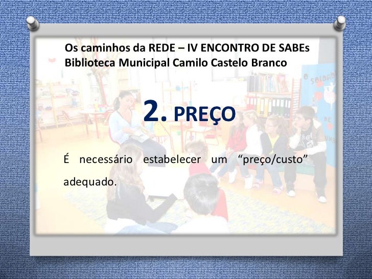 9. 9. 2. PREÇOÉ necessário estabelecer um “preço/custo”adequado.