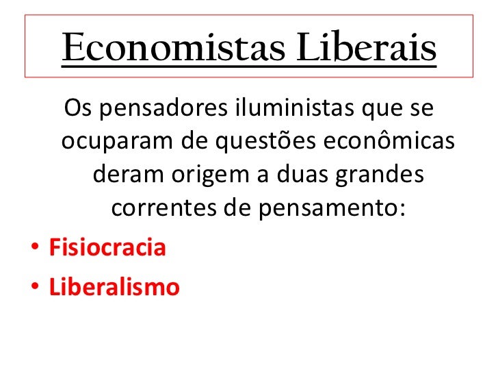 21. 21. Economistas Liberais Os pensadores iluministas que se ocuparam de questões econômicas deram origem a duas grandes correntes de pensamento:• Fisiocracia• Liberalismo